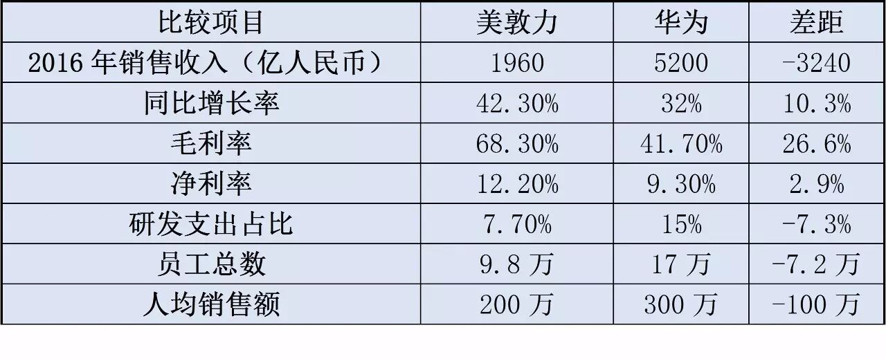 十多年前,当华为的销售额不过百多亿的时候,医疗器械企业数十亿的销售额和他比起来并不羞涩,喊出做医疗器械的华为的口号让人感觉挺靠谱。当今天华为的销售额超5000亿,未来一万亿也不是梦的时候,医疗器械界的华为就更加有努力的方向了!差距不可怕,努力追赶,越来越接近也是好的。